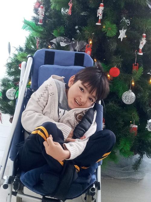 Hovhannes is 12 years old and lives with cerebral palsy. He cannot walk, sit independently, or purposefully use his hands. His speech is blurred and difficult to understand.